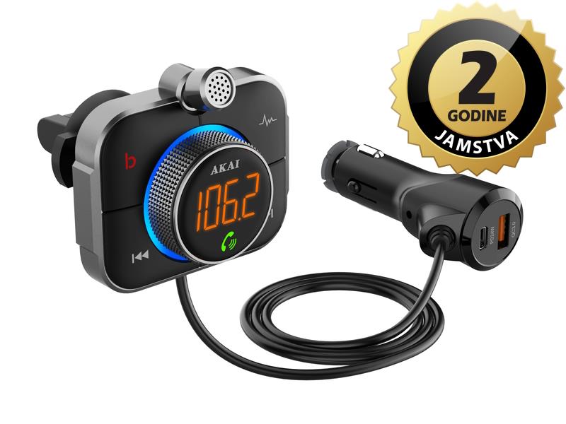 Akai FMT-95BT profesionalni je FM odašiljač koji omogućuje da uživate u omiljenoj glazbi na bilo kojem audio sustavu u vozilu koje ima ugrađeni FM radio.