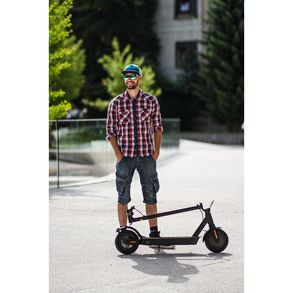 The S6 element is the fruit of Slovenian development and was created with safety and quality in mind. The powerful 500W motor provides excellent traction even on hilly roads. The scooter is made of quality aluminum and has tires with a honeycomb structure (without worrying about getting stuck due to a punctured tire). The large 10 "tires will provide a more comfortable ride with less vibration, the latter has a damping system. Skiro has a built-in system for the recovery of kinetic energy during braking, which charges the battery and thus increases range .