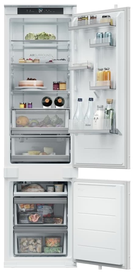 Dulja kvaliteta (svježina, aroma i okus) namirnicaUz Haier Air Surround napredan sustav zračnih otvora na više razina, smještenih s bočne strane unutrašnjosti hladnjaka, osigurana je ravnomjerna raspodjela hladnog zraka - uz manje temperaturnih oscilacija, isušivanje namirnica svedeno je na minimum te one dulje zadržavaju izvornu svježinu, aromu i okus - do 99% nakon 7 dana u usporedbi s prvim danom. |