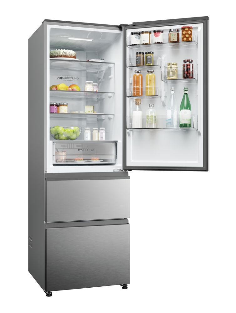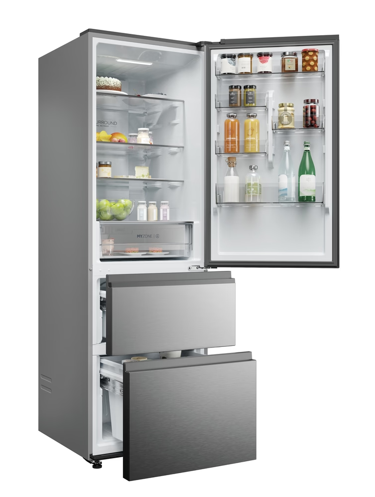 Širine 60 cm, Haier 3D 60 Series 3 hladnjaci s tri vrata jamče nenadmašnu fleksibilnost upotrebe zahvaljujući pametnom sustavu Direct Access ladica za zamrzavanje uz prostran kapacitet, lakoću pristupa i maksimalnu preglednost - vrhunska organizacija uz uštedu električne energije do čak 60% u odnosu na slične modele. Fresher Techs® patentirane Haier tehnologije donose pametna rješenja za bezbrižnu pohranu namirnica. Iskoristite prednost specijaliziranih zona - pomno osmišljena kontrola temperature i/ili vlažnosti za optimalne uvjete očuvanja organoleptičkih svojstava namirnica.