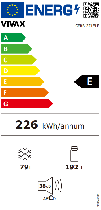Korisna zapremnina hladnjaka od 192 L i neto zapremnina zamrzivača od 79 L pruža dovoljno prostora i za potrebe većih obitelji.