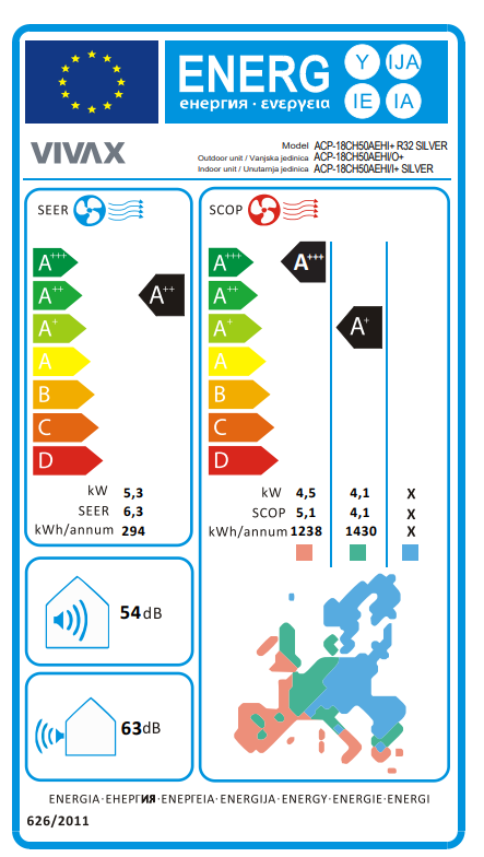VIVAX H+ design klima ACP-18CH50AEHI+ R32 SILVER ima funkciju 'I feel' kojom se preko daljinskog upravljača, pomoću senzora, očitava temperatura u prostoriji i šalje klimi. Unutarnja jedinica prilagođava temperaturu i brzinu vrtnje ventilatora tako da bude postignuta tražena temperatura, uz istovremenu uštedu energije. Vanjska jedinica ima grijače kompresora i kondenzatora koji sprječavaju slabiji rad i time osiguravaju nesmetani rad unutarnje jedinice u modu grijanja. ECO način rada štedi energiju za dodatnih 60% dok spavate. Dugotrajna kvaliteta je osigurana petogodišnjim jamstvom i korištenjem R32 plina koji je učinkovitiji i sigurniji za rad i za okoliš. Sve to u energetskoj klasi A+++ u hlađenju i A++ u grijanju. Uz kupnju WiFi modula, ovim uređajem možete upravljati putem aplikacije za kontrolu klima uređaja NethomePlus.