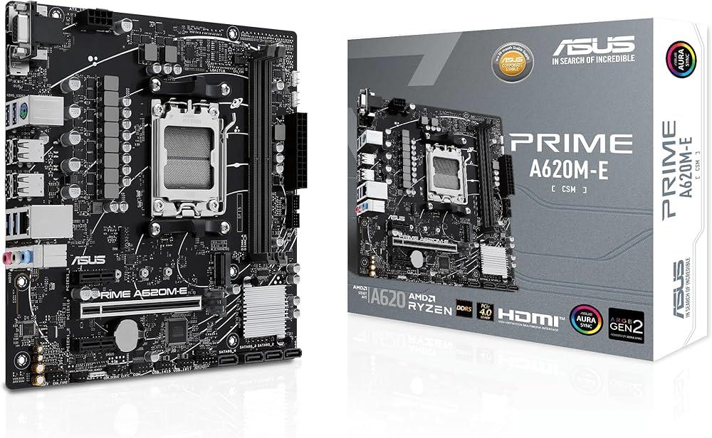 PRIME A620M-E-CSM, AM5, AMD A620, DDR5, Broj utora 2, 4800 - 7200 MHz, PCIe 4.0 x16 1, SATA3 4, RAID 0, RAID 1, 8-kanalni audio, 1x 10/100/1000 Ethernet, mATX, USB 3.2 4