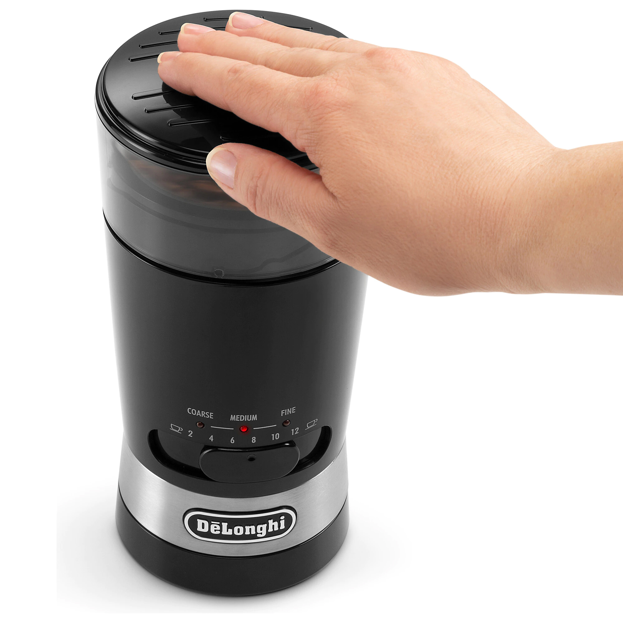 Pritisnite i držite gumb za mljevenje kako biste samljeli zrna na željenu gustoću za potpuno prilagođenu kavu.