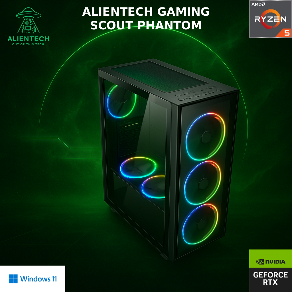 Gaming računalo ALIENTECH Scout Phantom, Ryzen 5 7600X, 16GB, 1TB SSD, GeForce RTX 5060 Ti 16GB, Windows 11P