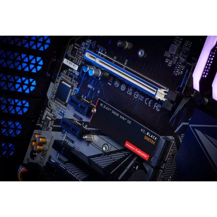 The SanDisk WD Black SN850X (WDS200T2X0E) is a powerful 2 TB NVMe SSD in M.2 2280 format with a PCIe Gen4×4 interface. It delivers sequential read speeds of up to 7,300 MB/s and write speeds of up to 6,600 MB/s. It uses 3D TLC NAND and WD controlling G2 (20-82-20035-B2) with built-in DRAM. The SSD is optimized for demanding applications and gaming and supports Game Mode 2.0 via the WD SSD Dashboard.