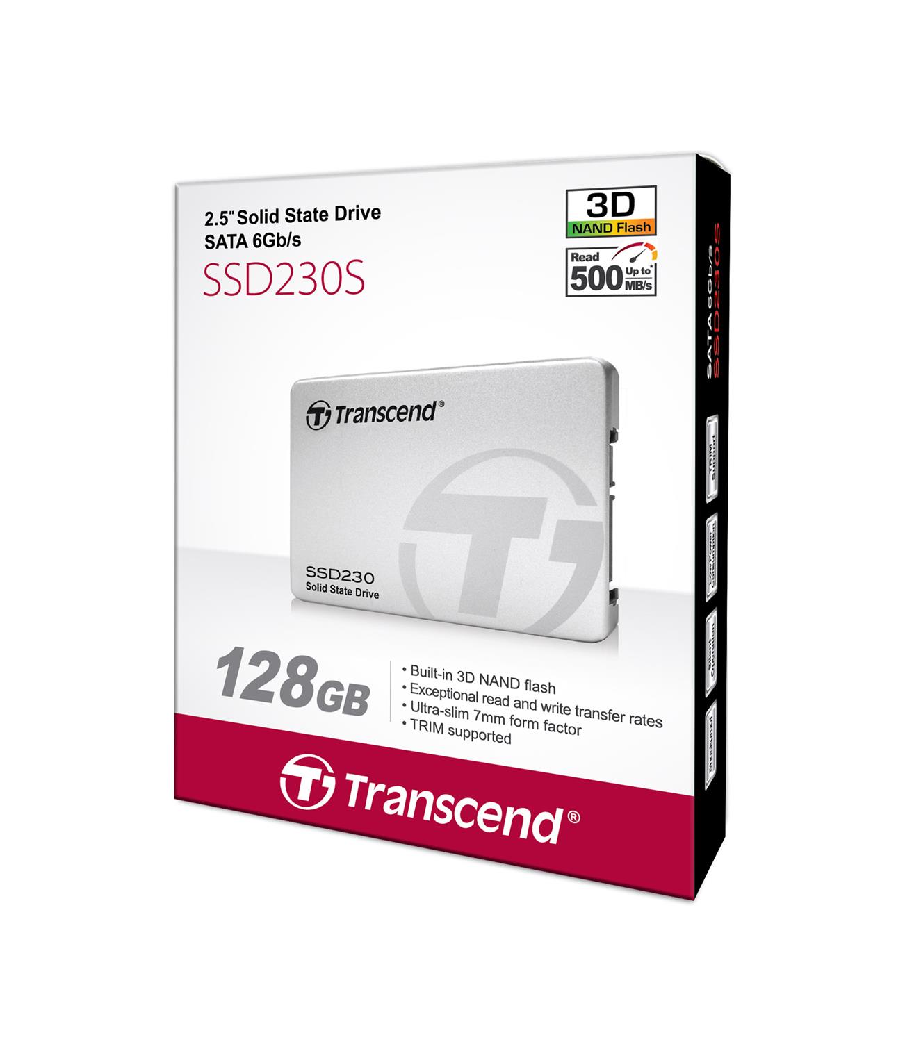 SSD Transcend 128GB, SSD230S 2,5", Sučelje SATA III / 6Gbps , 3D NAND TLC, Brzina čitanja do: 560 MB/s, Brzina zapisivanja do: 520 MB/s, 3,5" bracket ne. Brzina može varirati ovisno o hardveru, softveru, korištenju i kapacitetu SSD-a.