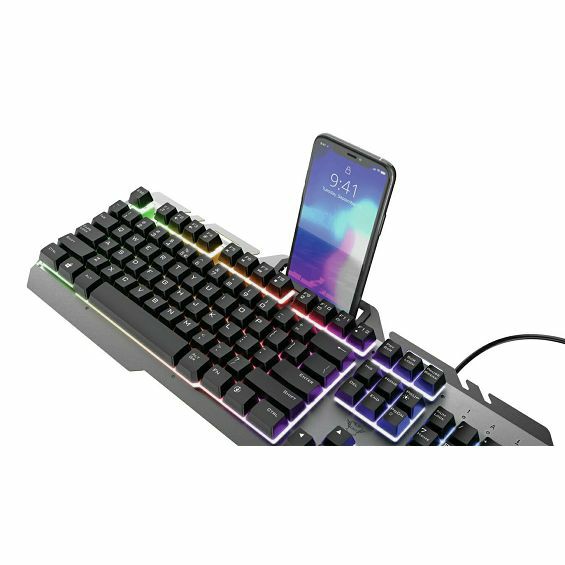 12 multimedijskih tipki Tipkovnica pune veličine s izdržljivom metalnom gornjom pločom Integrirani držač telefona za praćenje stanja vašeg zaslona LED osvjetljenje u duginim bojama s podesivom svjetlinom i brzinom Raspored tipkovnice: QWERTY Tip priključka: USB 2.0 Dužina kabela 180 cm Izravno onemogućavanje tipke s logotipom sustava Windows kako bi ostali igrati Kompatibilne vrste uređaja/platforme: laptop, PC/Windows
