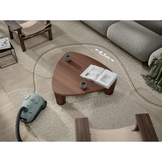 Ovaj ergonomski usisavač omogućuje vam čišćenje površina do 72 kvadratna metra bez promjene utičnice. Zahvaljujući teleskopskoj cijevi, velikim kotačima i radijusu čišćenja od 8,5 metara možete se lako kretati i čistiti bez prekida.