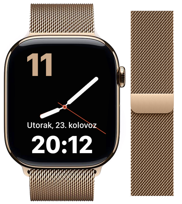 Centar tehnikeProizvodiTelefoni • SatoviPametni satovi i sportske narukviceAppleApple Watch Series 11 GPS + Cellular 46mm Gold TC, Gold Milanese Loop - M-L