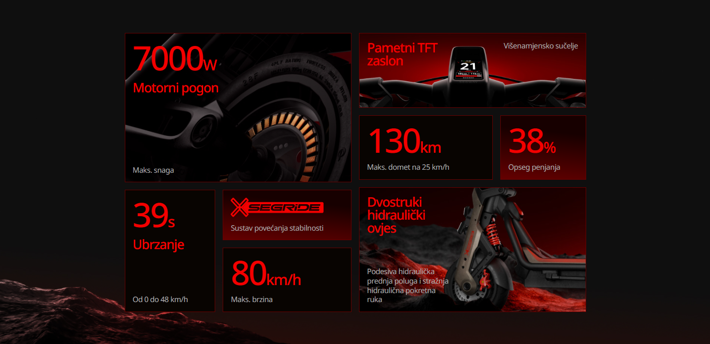Upoznajte seriju SEGWAY GT3, koja mijenja pravila igre i redefinira što SuperScooter može biti. Ovo nije samo nadogradnja - to je revolucija. S najvećom brzinom od 80 km/h i 0-48 km/h u ubrzanju od 3,9 s, ovo čudo s dva motora SEGWAY GT3 Pro usuđuje se pomaknuti granice. Vožnja sljedeće generacije u kojoj se susreću performanse i inovacije kako bi pružili uzbudljivo iskustvo.