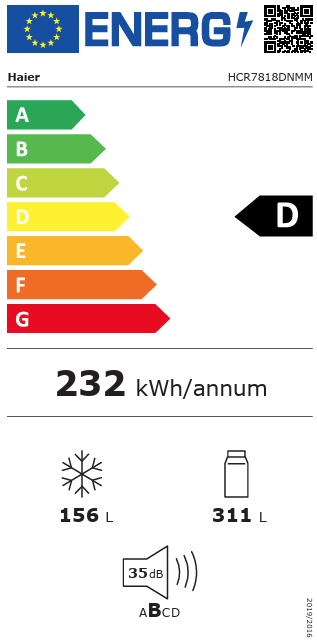D klasaOdabir Haier hladnjaka D klase donosi uštedu energije, bolju učinkovitost i brigu za okoliš – potrošnja energije je smanjena za -20% u odnosu na E klasu. |