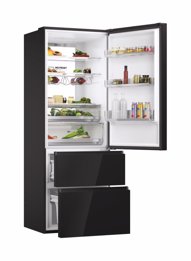 Sa širinom od 70 cm, Haier 3D 70 Series 7 hladnjaci oduševljavaju inovativnim sustavom ladica za zamrzivač koji omogućava učinkovito skladištenje vaših smrznutih namirnica, a istovremeno omogućuje brzi pristup cijelom zamrzivaču i štedi 60% više energije u usporedbi s ostalim hladnjacima. Fresher Techs® tehnologija u međuvremenu stalno prilagođava uvjete kako bi osigurao očuvanje kvalitete vaše hrane. Haier 3D 70 Series 7 hladnjaci jamče savršeno očuvanje vaših namirnica zahvaljujući specijaliziranim zonama, kao i drugim inovativnim rješenjima u odjeljcima za hlađenje i zamrzavanje.