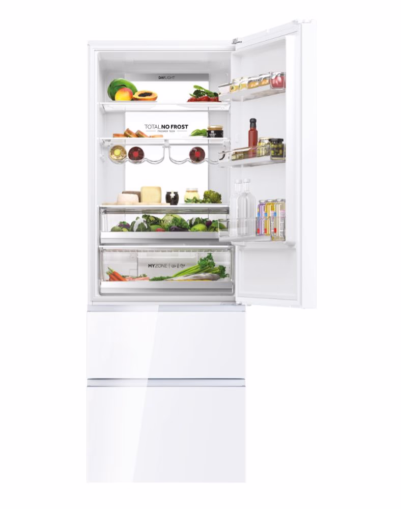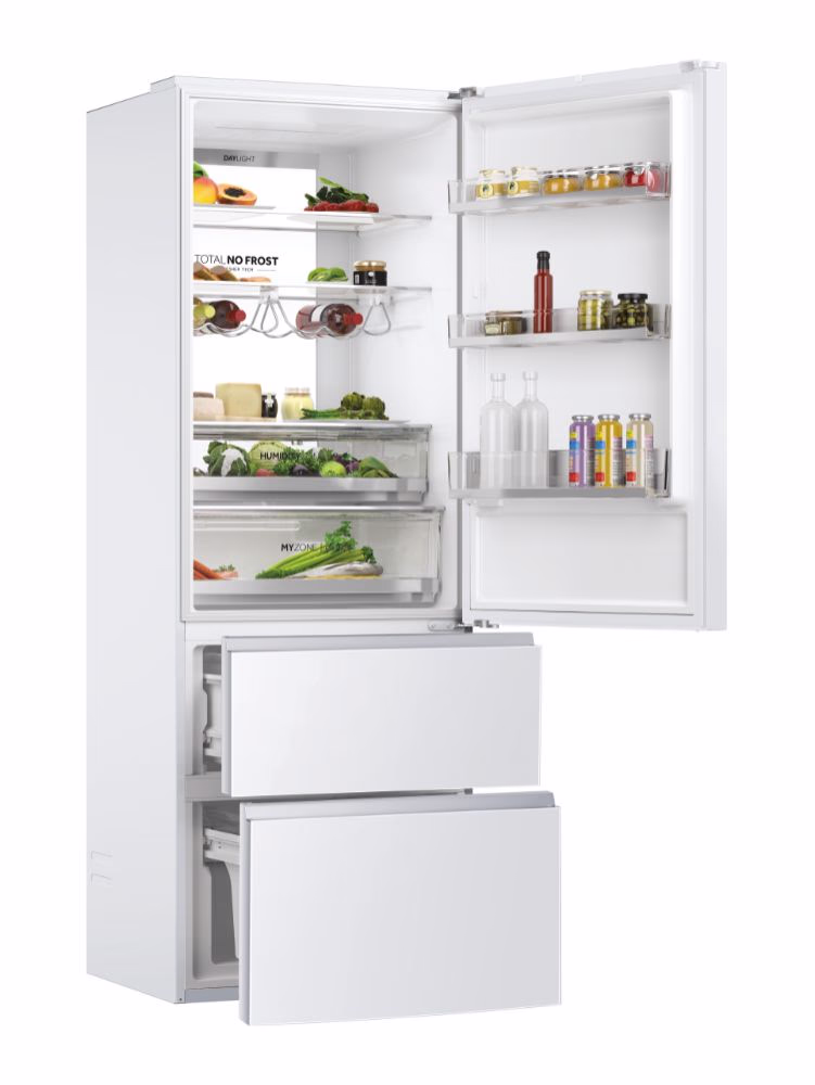 Sa širinom od 70 cm, Haier 3D 70 Series 7 hladnjaci oduševljavaju inovativnim sustavom ladica za zamrzivač koji omogućava učinkovito skladištenje vaših smrznutih namirnica, a istovremeno omogućuje brzi pristup cijelom zamrzivaču i štedi 60% više energije u usporedbi s ostalim hladnjacima. Fresher Techs® tehnologija u međuvremenu stalno prilagođava uvjete kako bi osigurao očuvanje kvalitete vaše hrane. Haier 3D 70 Series 7 hladnjaci jamče savršeno očuvanje vaših namirnica zahvaljujući specijaliziranim zonama, kao i drugim inovativnim rješenjima u odjeljcima za hlađenje i zamrzavanje.