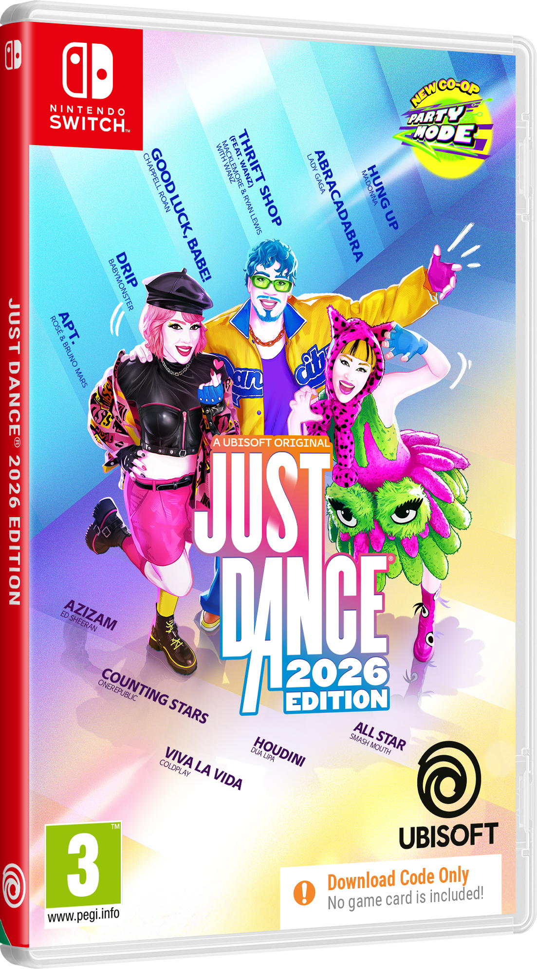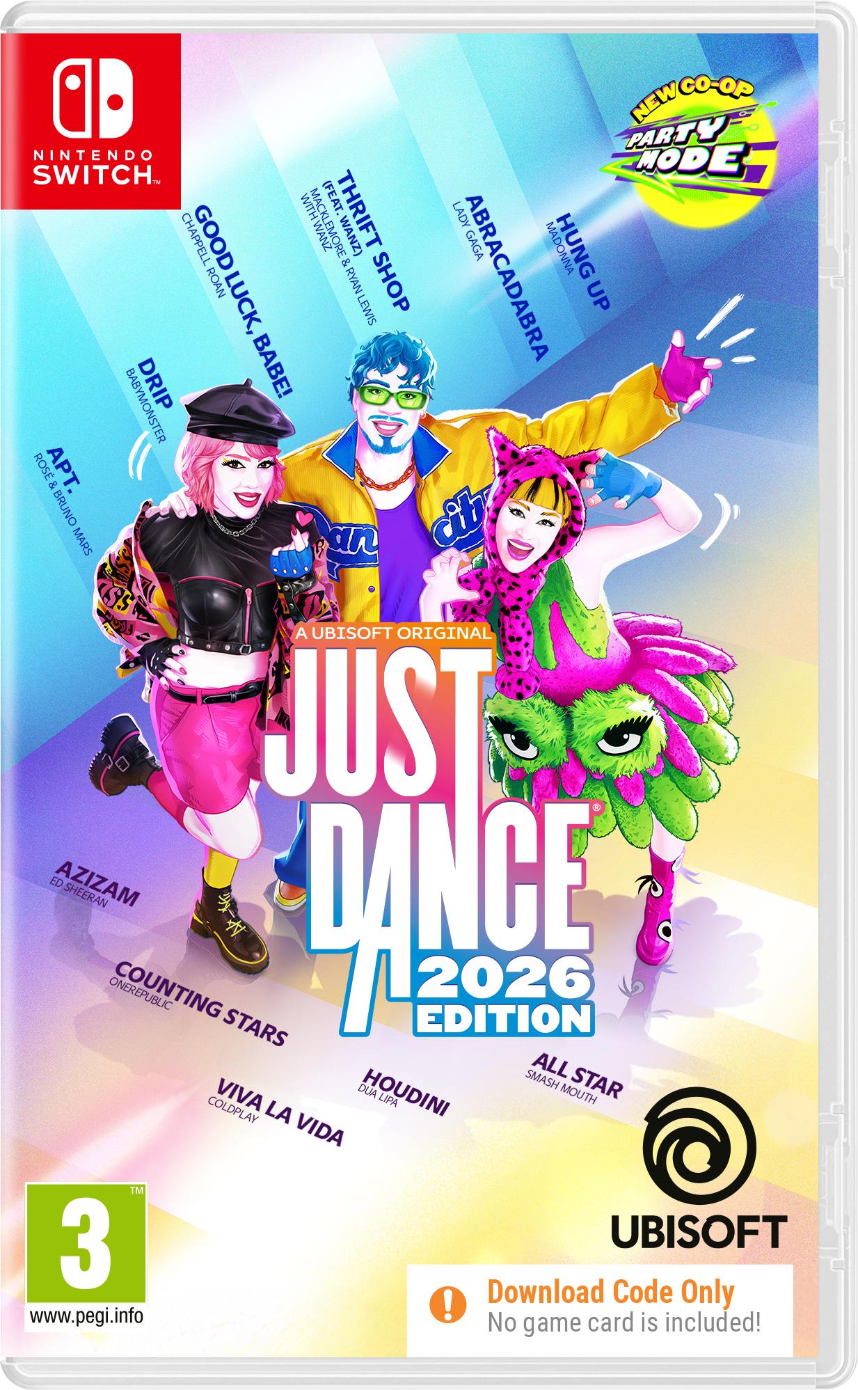 Okupi svoje prijatelje i obitelj i pretvori svoj dom u plesni podij s Just Dance 2026 Edition, koji donosi 40 uzbudljivih novih pjesama! Od najvećih hitova do bezvremenskih klasika – za svakoga se nađe ponešto.