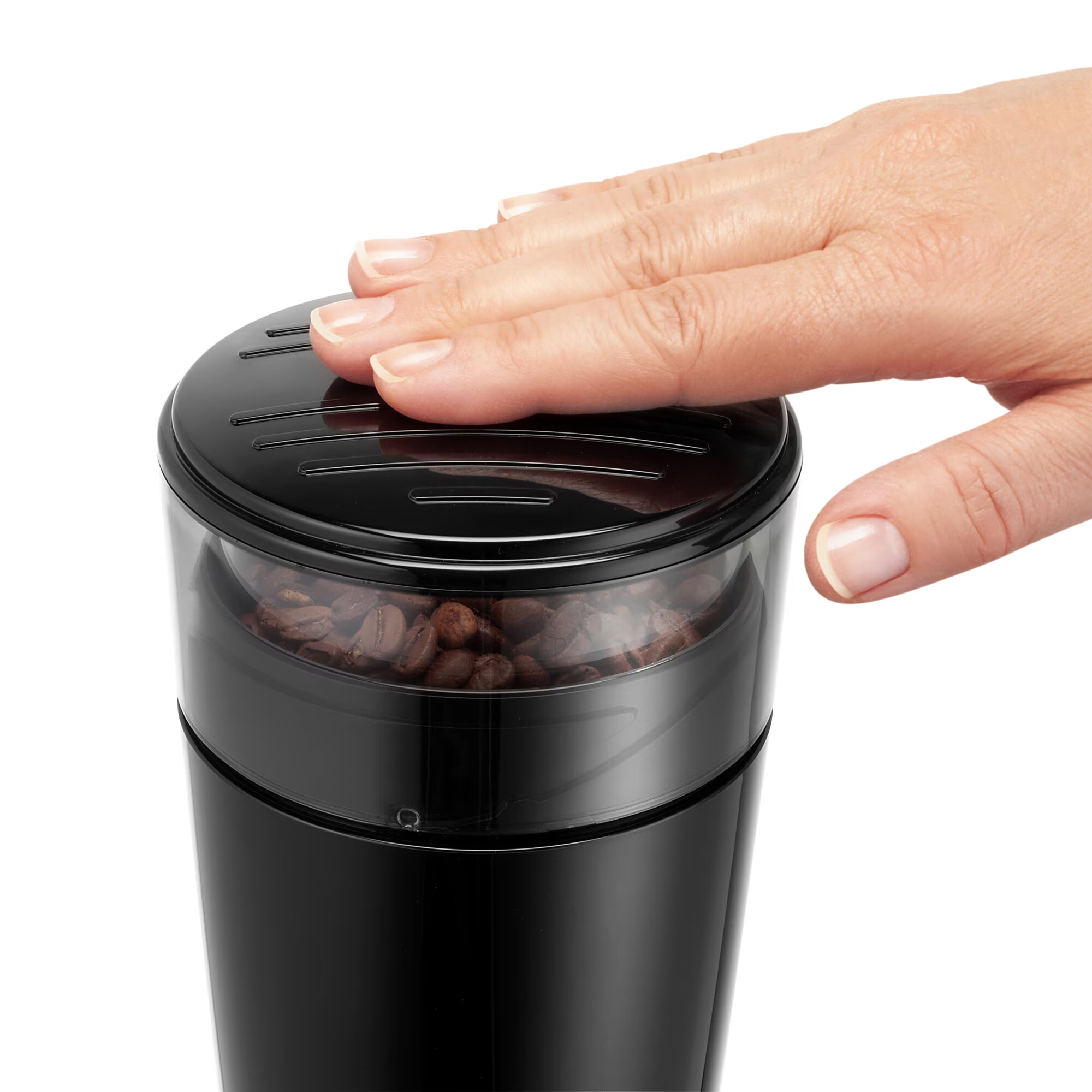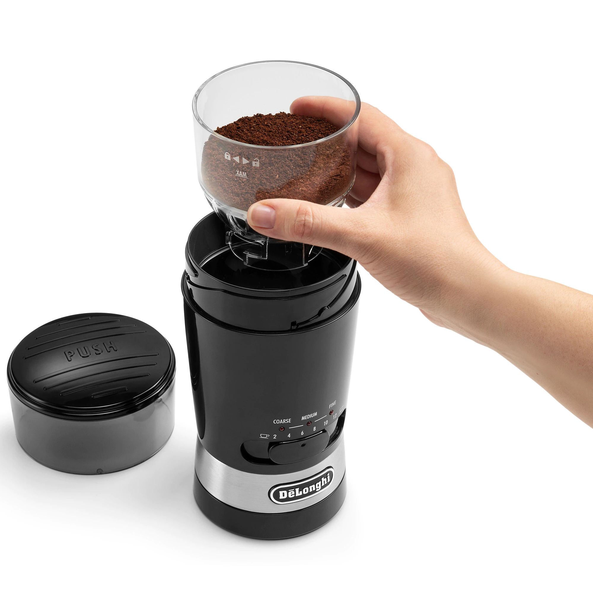 Pritisnite i držite gumb za mljevenje kako biste samljeli zrna na željenu gustoću za potpuno prilagođenu kavu.