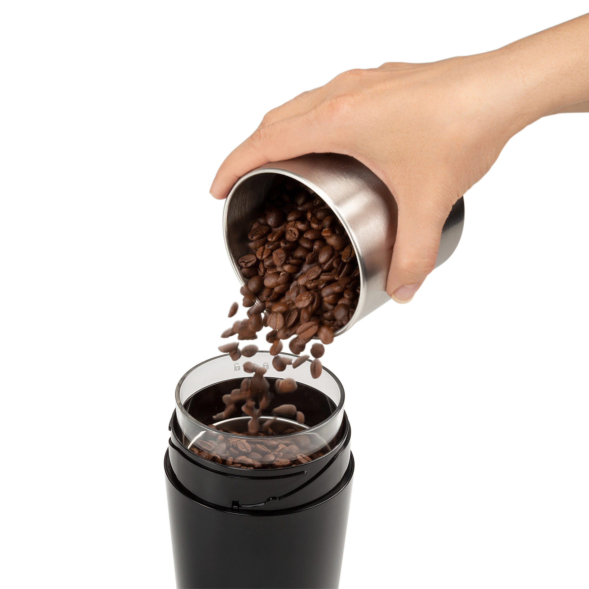 Oštrice mlinca od nehrđajućeg čelika lako melju zrna kave u prah.