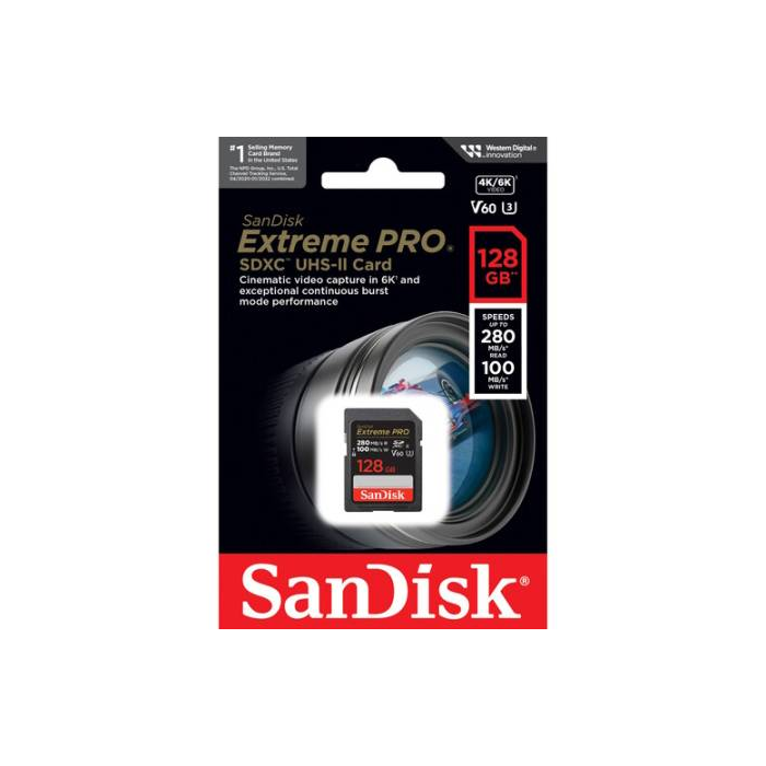 SanDisk Extreme PRO SD UHS-II with Video Speed Class 60 delivers a minimum sustained write speed of 60 MB/sec, allowing you to record 6K cinema-quality video. The card also supports 4K UHD recording in standard or slow-motion mode and Full HD in super slow-motion. With capture speeds of up to 100 MB/s, it is suitable for continuous sequential shooting and time lapses, in both RAW and JPEG formats. Transfer speeds of up to 280 MB/s significantly reduce download times for photos and videos. To achieve the highest speeds, it is recommended to use the SanDisk Professional PRO-READER Multi Card Reader (sold separately). Different capacities are available to allow longer recording times without the need for frequent card changes. The card is designed for reliable performance in demanding conditions. It is resistant to water, temperature, humidity, shock, drops, X-rays and magnetic fields, ensuring safe data storage even under intensive use. A 2-year offer is included for RescuePRO Deluxe software (download required) to recover accidentally deleted files.