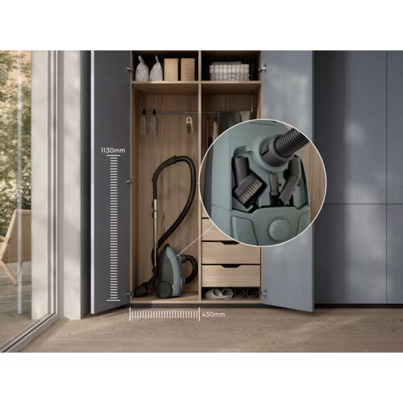 Naš najkompaktniji usisavač s vrećicom koji učinkovito skuplja prašinu i prljavštinu sa svih površina – svakim potezom. Četka AllFloor lako se prebacuje između čišćenja tvrdog poda i tepiha, a dodatna oprema nalazi se na samom usisavaču kako bi bila pri ruci kada zatreba
