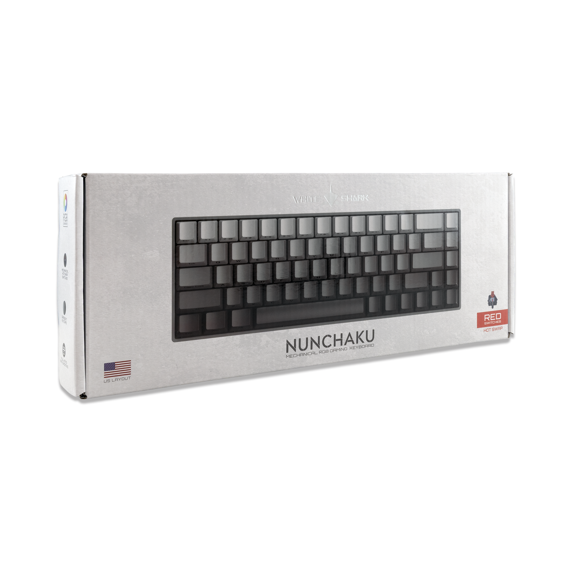 Centar tehnikeProizvodiInformatika • e-VozilaRačunalna periferijaTipkovniceWhite SharkWhite Shark TIPKOVNICA GK-007711 NUNCHAKU Siva Gradient - Mehanička / US - CRVENI PREKIDAČI