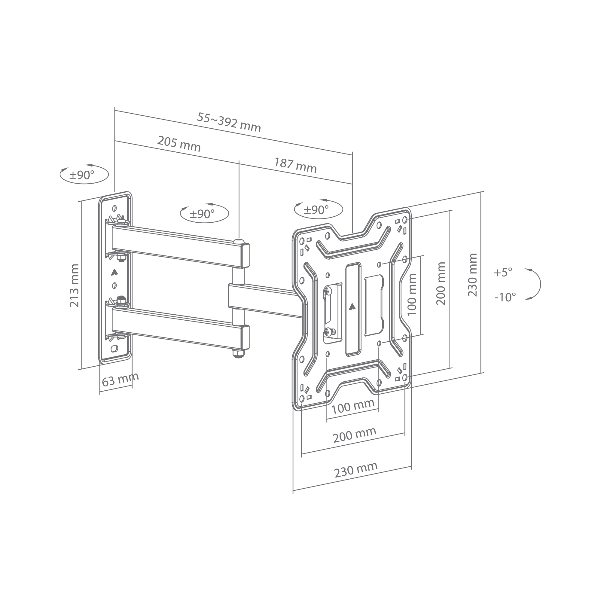 • Horizontalno zakretanje: +90°~-90°